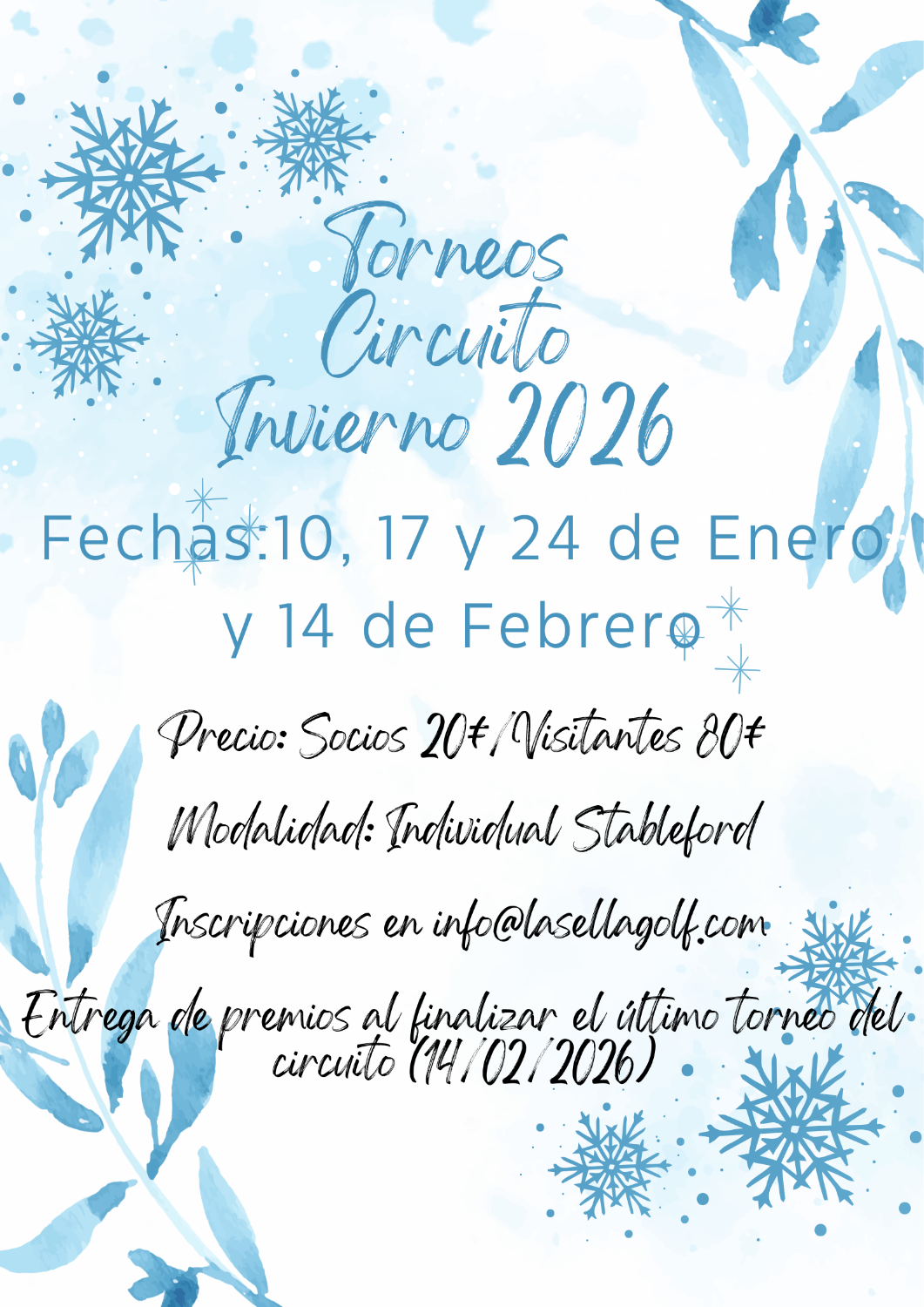 Registrations at info@lasellagolf.com up to 24 hours before.